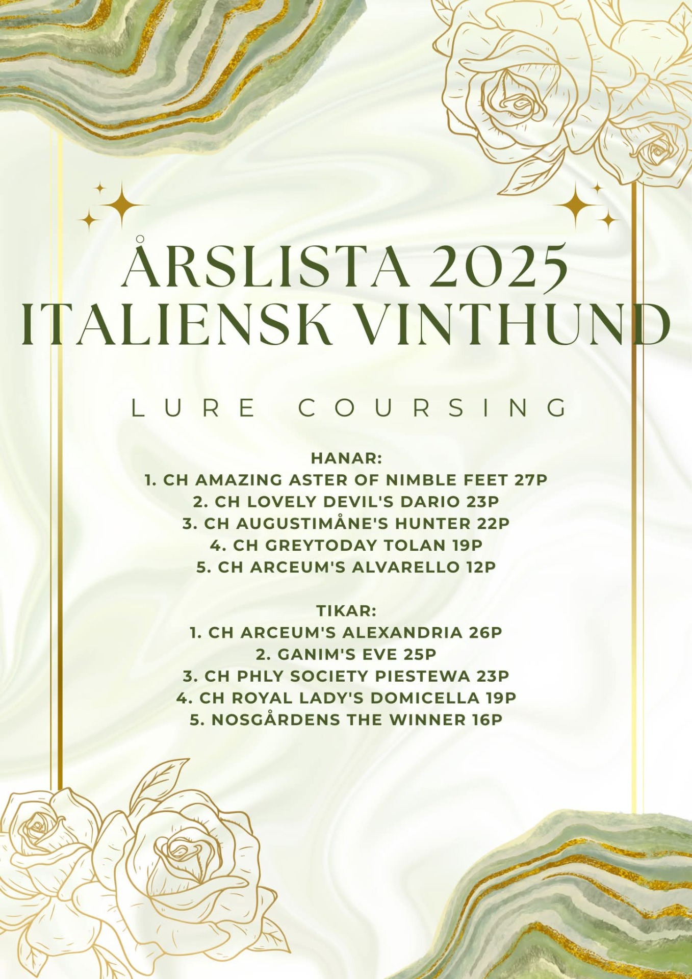Svenska Vinthundklubben lørdag : Posh BIR valp, Chanel excellent, Ck, 3 BTK, reservecert og BIS Unghund.